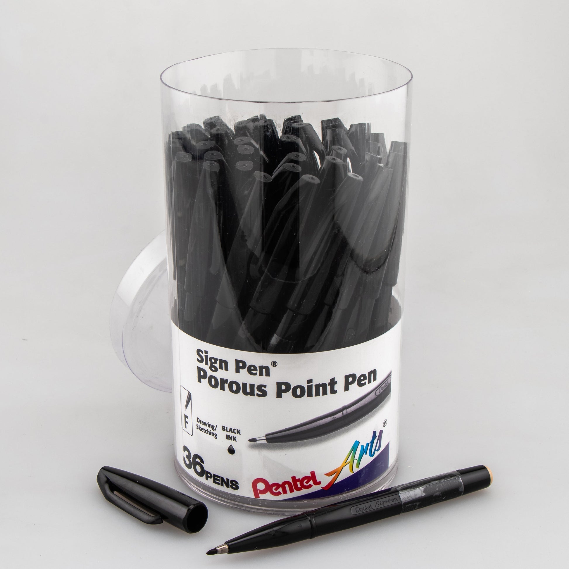 Pentel Arts Sign Pen, Fiber-tipped, Black Ink 36-pk Canister (S520PC36A)