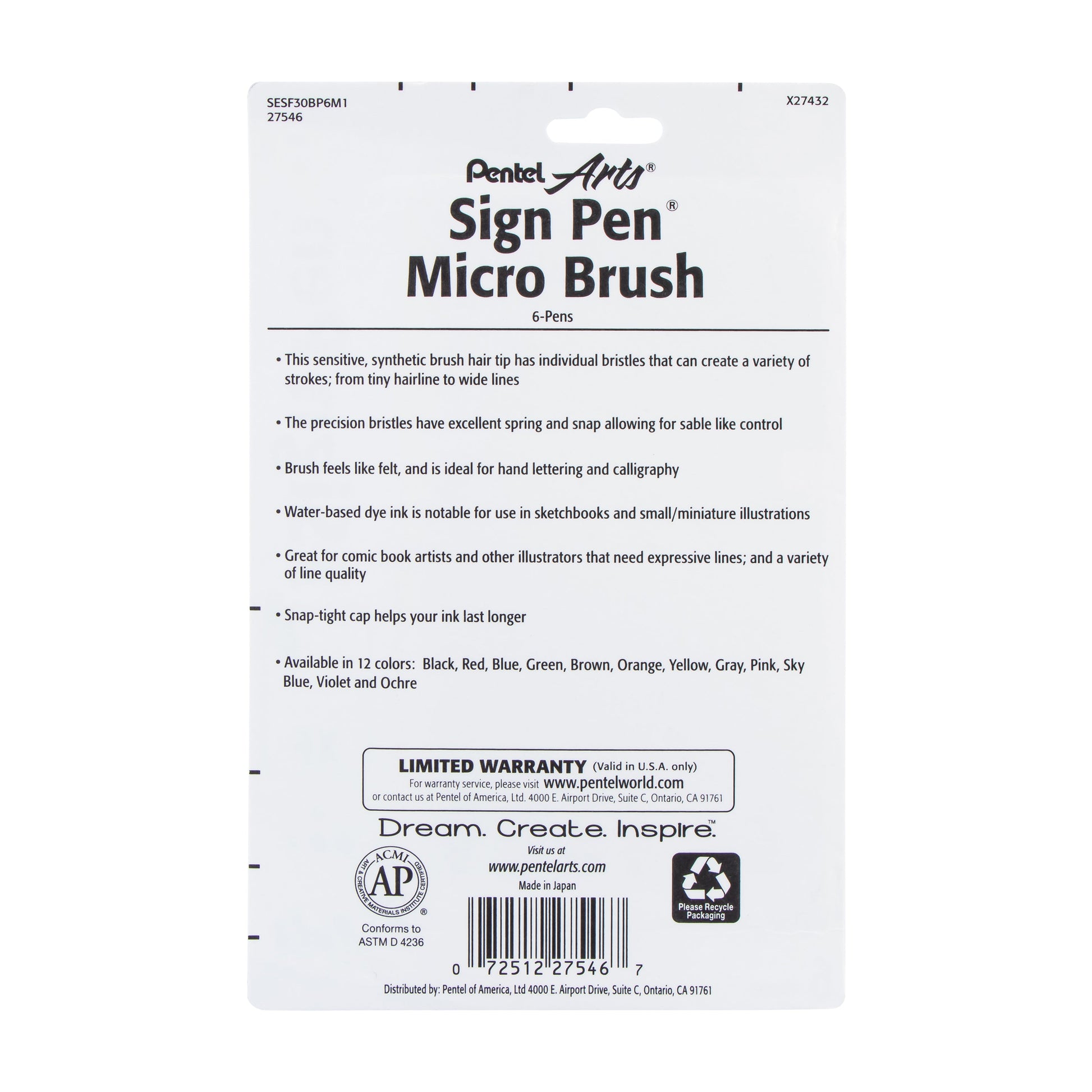 Pentel Arts Sign Pen Micro Brush, Assorted Ink, (F/N/P/S/V/Y) 6-pk (SESF30BP6M1)
