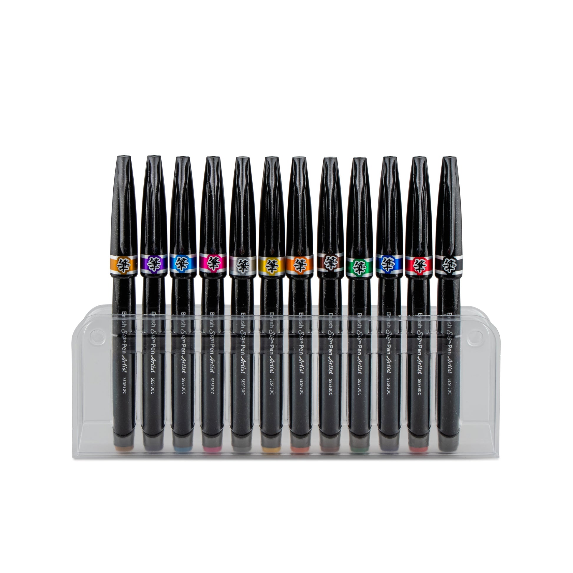 Pentel Arts Sign Pen Micro Brush Tip, Assorted Colors (A/B/C/D/E/F/G/N/P/S/V/Y), 12-pk Plastic Box (SESF30CPC12)